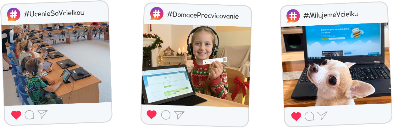 “Učím chlapčeka cudzej národnosti a po zatvorení škôl nastal veľký problém, keď som mu nemohla osobne pomáhať a bola som mu k dispozícii iba provizórne na diaľku. Hľadala som miesto, kde by mohol pohodlne pracovať, zdokonaľovať sa a zároveň sa u toho aj dobre baviť. Včielka je na tieto účely perfektná. Ďakujem za ochotu pomôcť v dobe domáceho vyučovania! Pre nás pedagógov a asistentov je to veľká pomoc!”